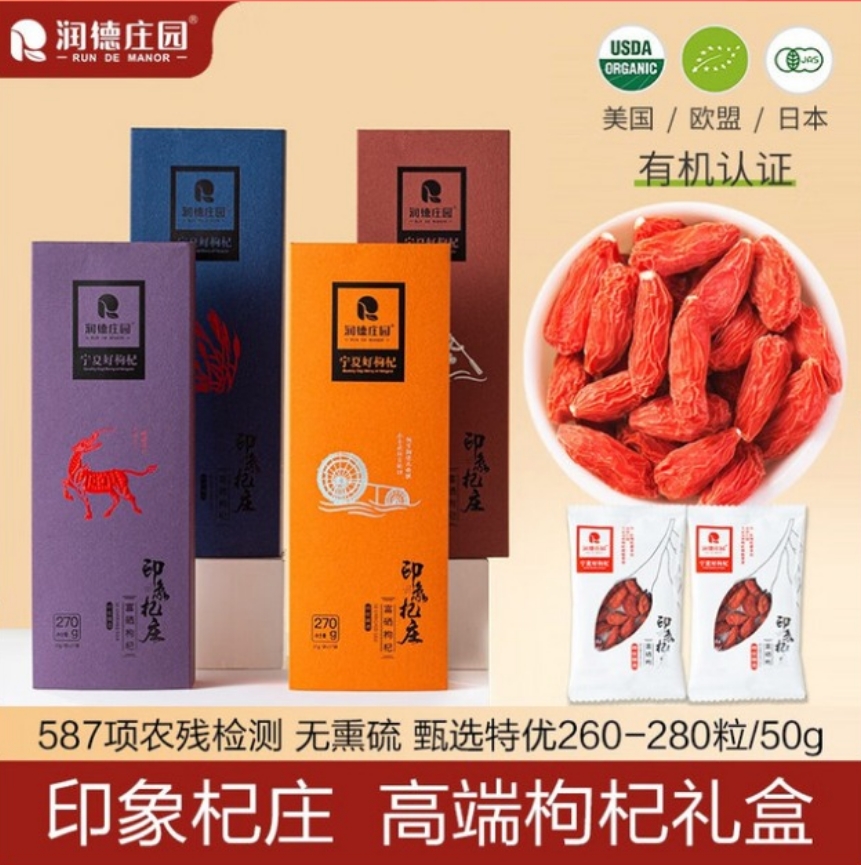 润德庄园 印象杞庄-枸杞干果(礼盒装)10g*27*4盒¥358.2 -